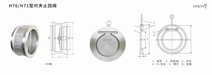 H76 型对夹双瓣止回阀1.0/1.6/2.5MPa 主要连接尺寸